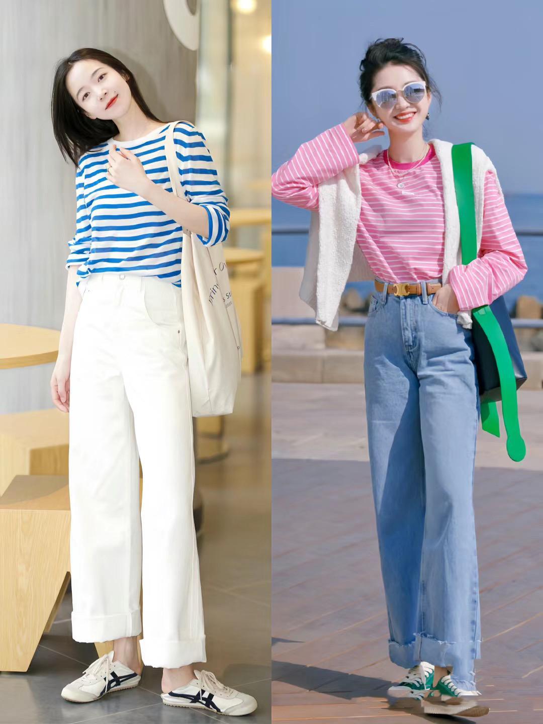 最簡單的方式,就是用白色T恤+條紋針織馬甲的疊穿。黑白條紋馬甲,疊搭白色T恤,色彩上的呼應也提升了整體穿搭的協調性,簡單又耐看。