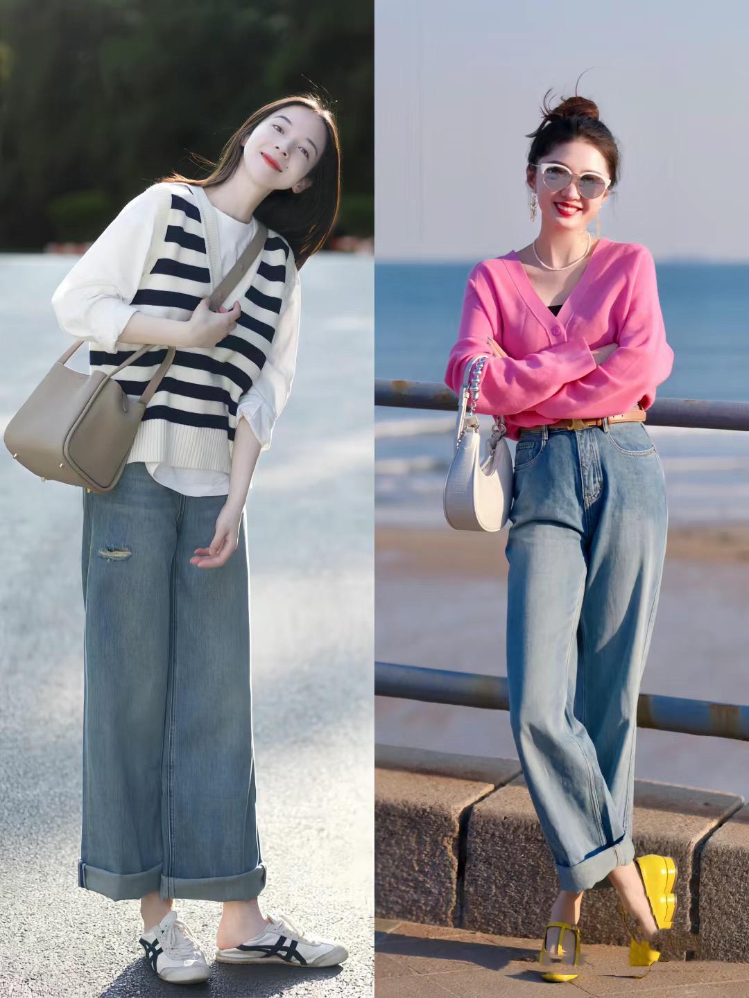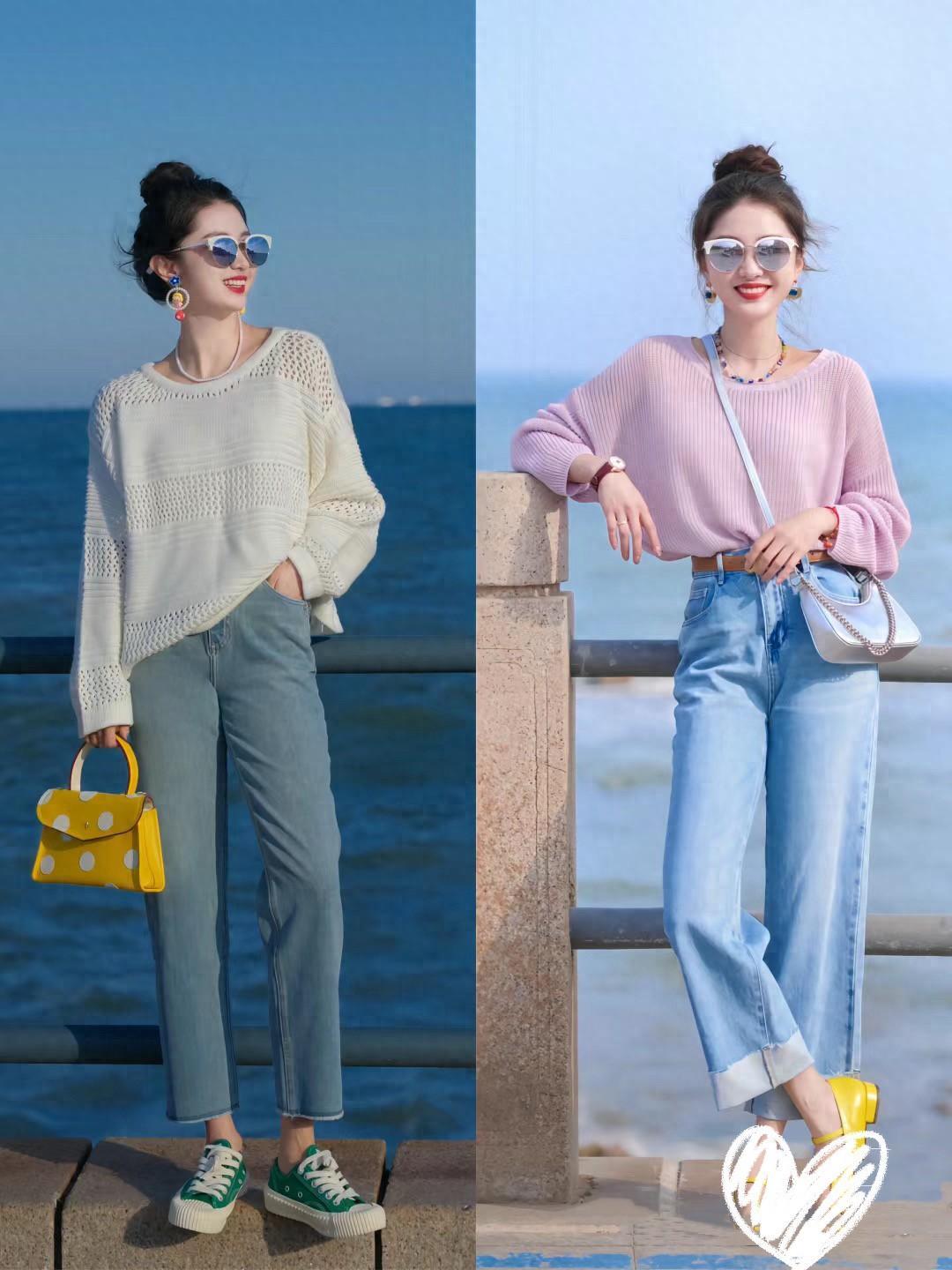 寬鬆的針織開衫,我們可以選擇休閒風的款式。圓領、落肩、收腰的下襬,穿起來利落又顯精神。我們可以用寬鬆針織衫配高腰直筒褲,整體順色的搭配也很高級。