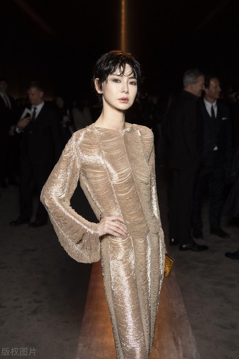 不得不說,戚薇纔是時尚女王。她穿一條“無痕裙”自信的秀出S曲線,高挑挺拔的身材格外醒目。