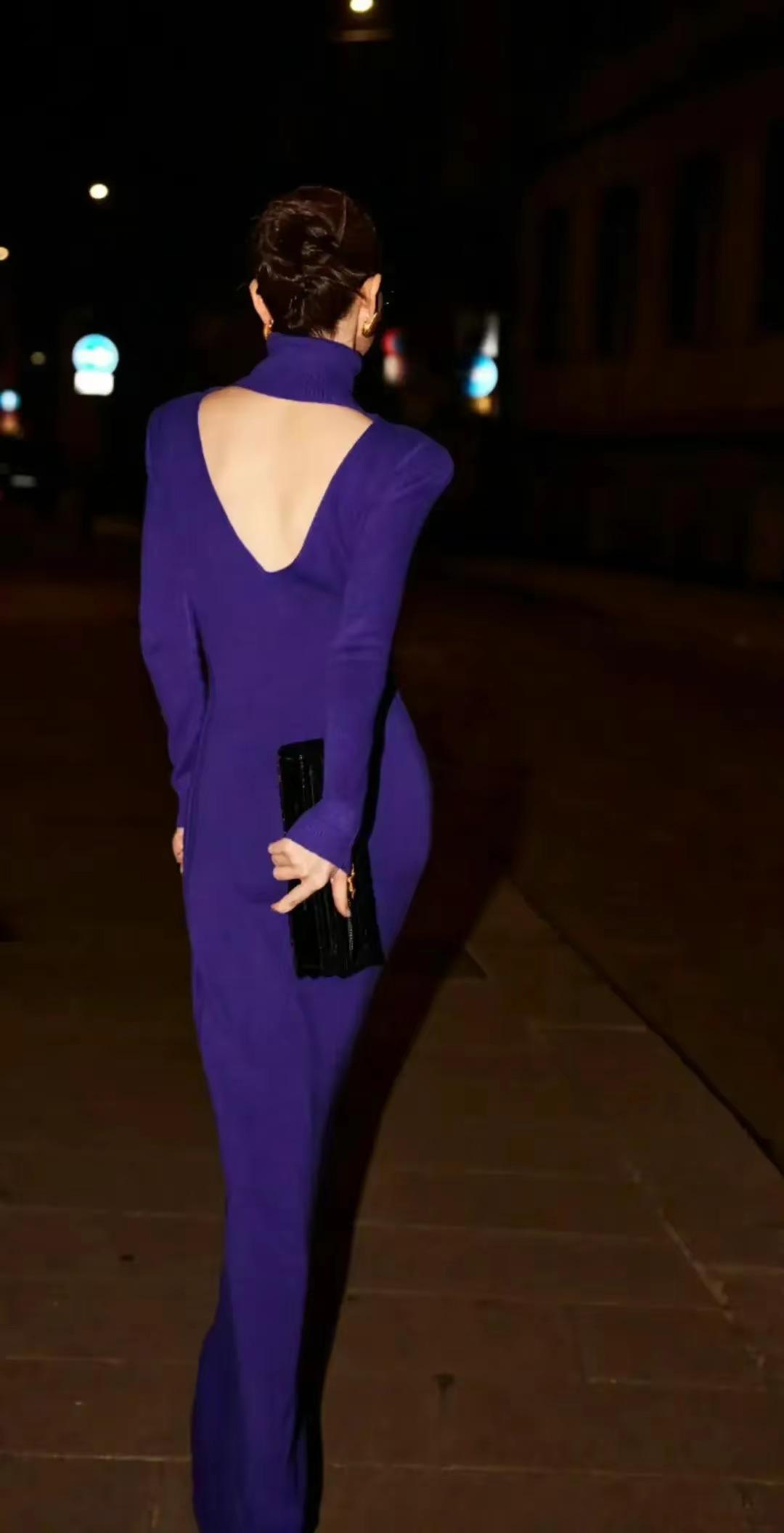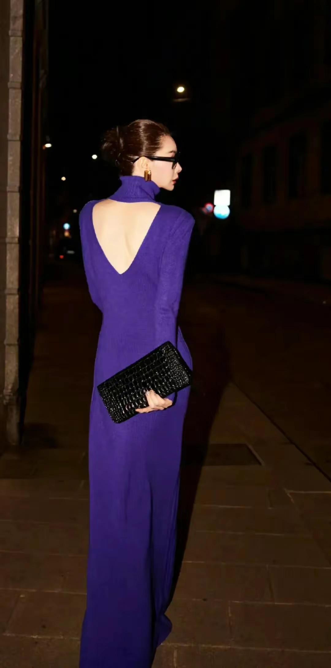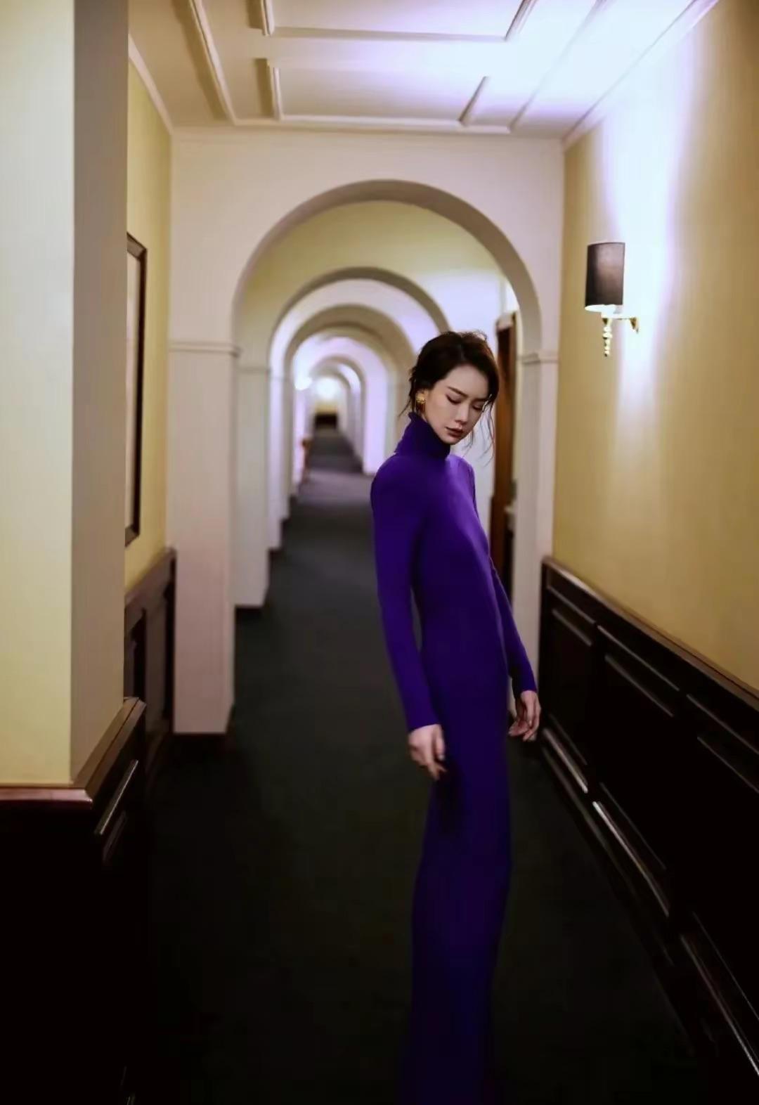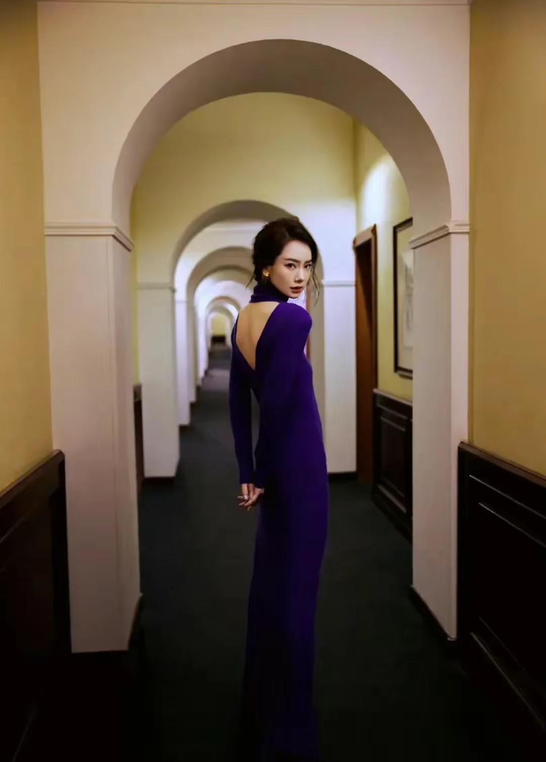 女明星的穿搭,看似簡約低調、卻處處暗藏心機。就像戚薇的這條深紫色無痕裙,選擇了高領+露背的設計,表現出高級又性感的風情。