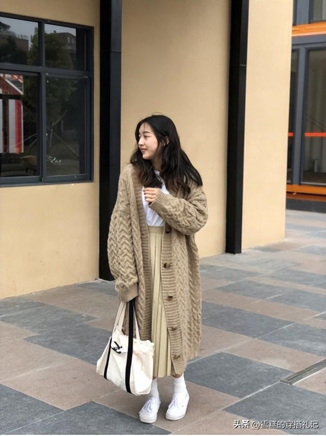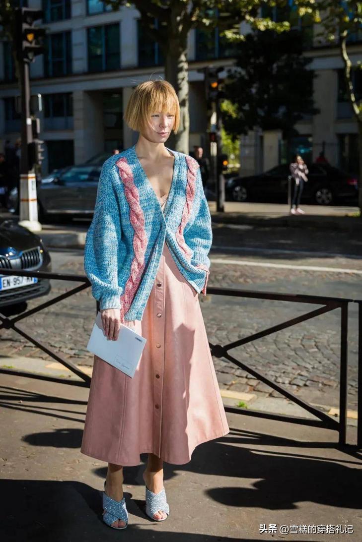 一到過了春天,溫度回升之後褲子就像是被“焊”在了腿上,不論上衣穿什麼不變的都是褲子。有沒有可能褲子就是你看着老氣的重要原因,不如今年就來試試“開衫+過膝裙”,穿上洋氣減齡。