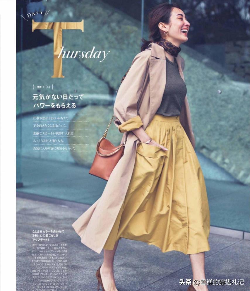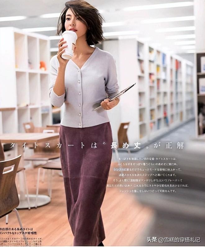 上了年紀,長時間的久坐會導致梨型身材的問題,相比較修身款A字版型的過膝裙可能會更顯瘦一些