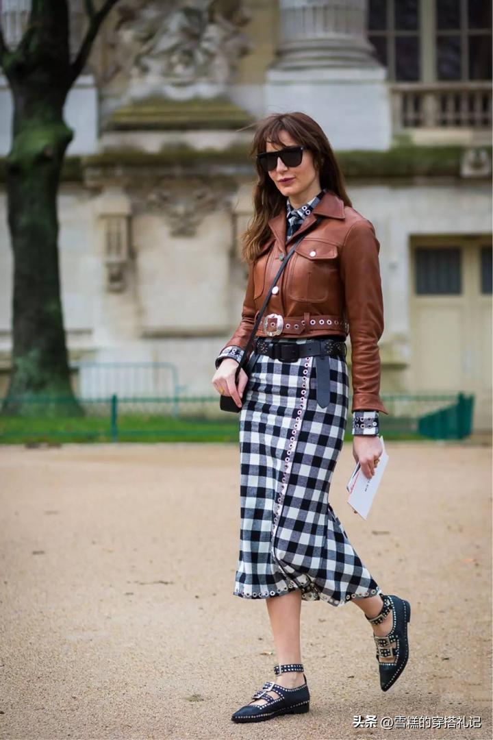 半身裙的版型,膝蓋以下的長度都可以嘗試,但是儘量避免僅僅是在裙襬位置的細節處理,很容易會有重心下移壓低身高的問題。倒不如整個裙身都是褶皺的百褶裙,俏皮減齡。五六十歲穿上絲毫不會突兀。