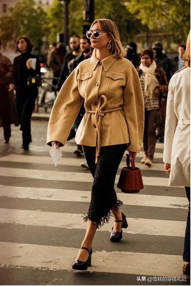 西裝的開衫整體的面料版型都要比普通的輕便很多,同時爲了降低顯胖的風險可以選擇正肩的版型或者是腰間繫帶的設計,去突出女性的線條美。即便是上了年紀的肉肉身材也絲毫不用擔心的好嗎?繫腰真的時髦又高級。