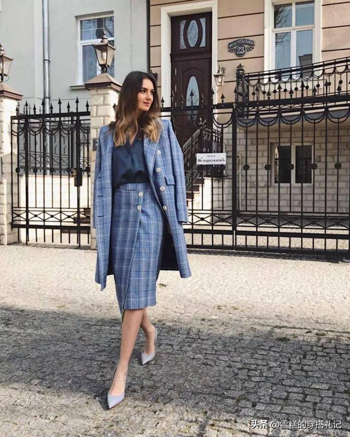 同時西裝開衫的長度也不要過長,剛好可以蓋住臀部位置是最佳長度,過膝裙纔不會呈現出分截顯矮的問題。
