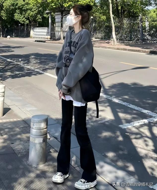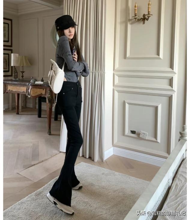 【整套馬蹄褲的配色簡約大方,極簡的穿搭更上檔次】
