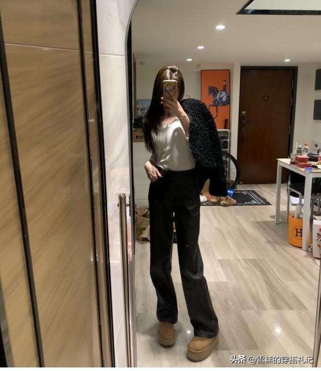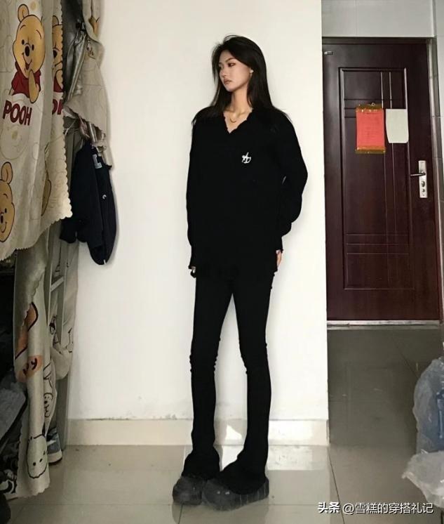 02.褲子的輪廓遮擋腳面,穿厚底鞋也顯高