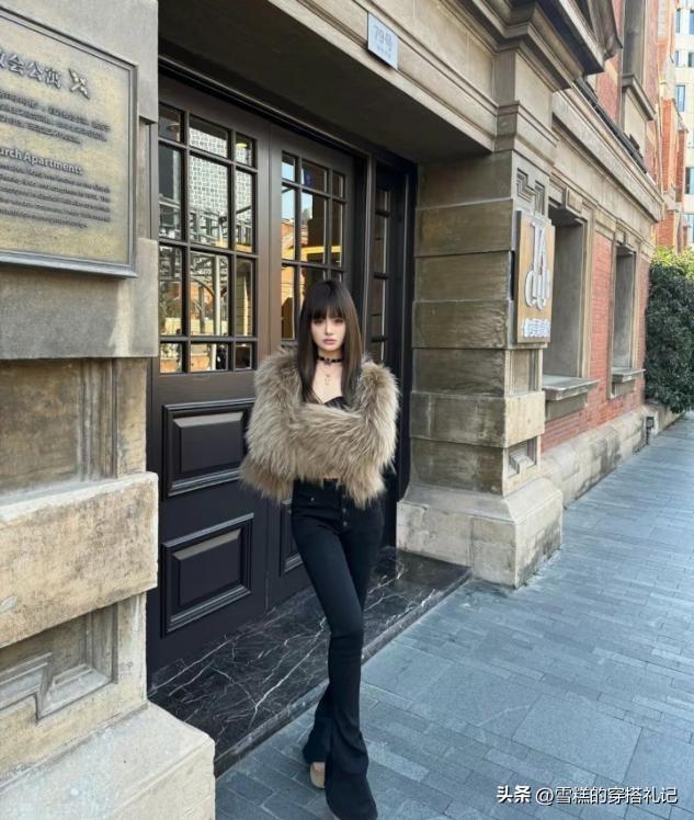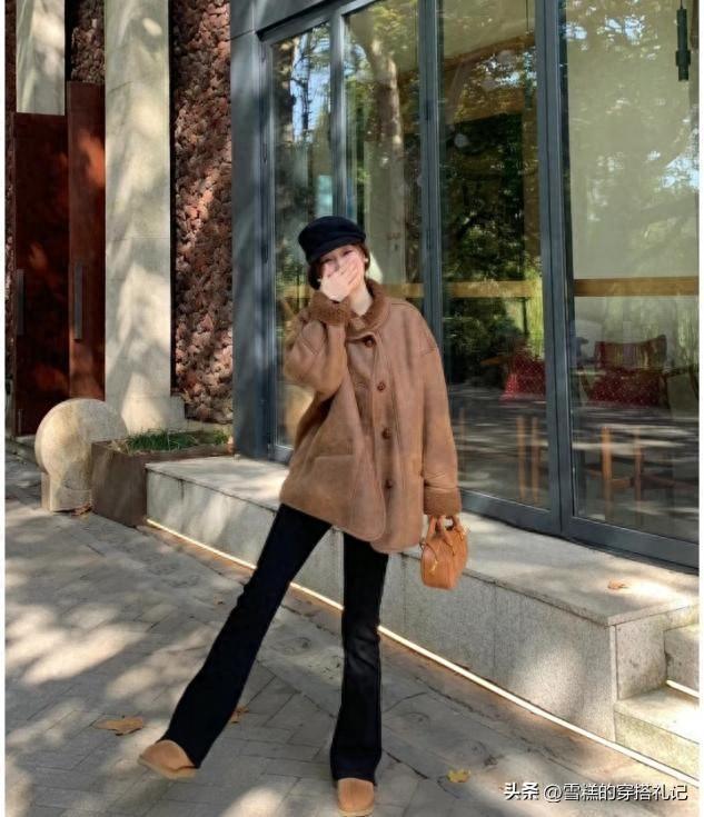 暖色調的運用可以讓馬蹄褲造型更有色彩變化感,依然是以黑色作爲褲裝的配色,巧克力色或者美拉德色系的上衣,剛好符合當下配色的潮流,大膽的去疊加和運用,你的造型體驗感會很強。