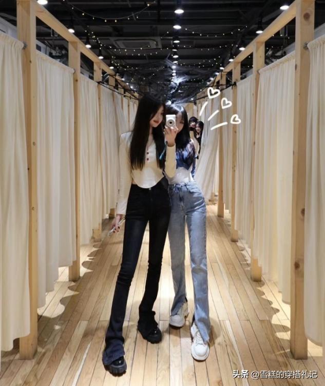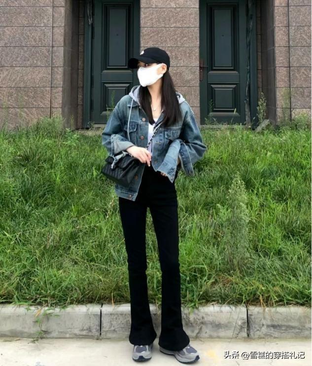 如果說你想要穿好馬蹄褲,那麼,選款就相當的重要,本身就擁有漂亮腰臀對比感的女生,馬蹄褲款式就選擇牛仔面料,支撐性很強,無論是黑色還是藍色,穿搭都很方便,能夠展示出你的體型線條走向。