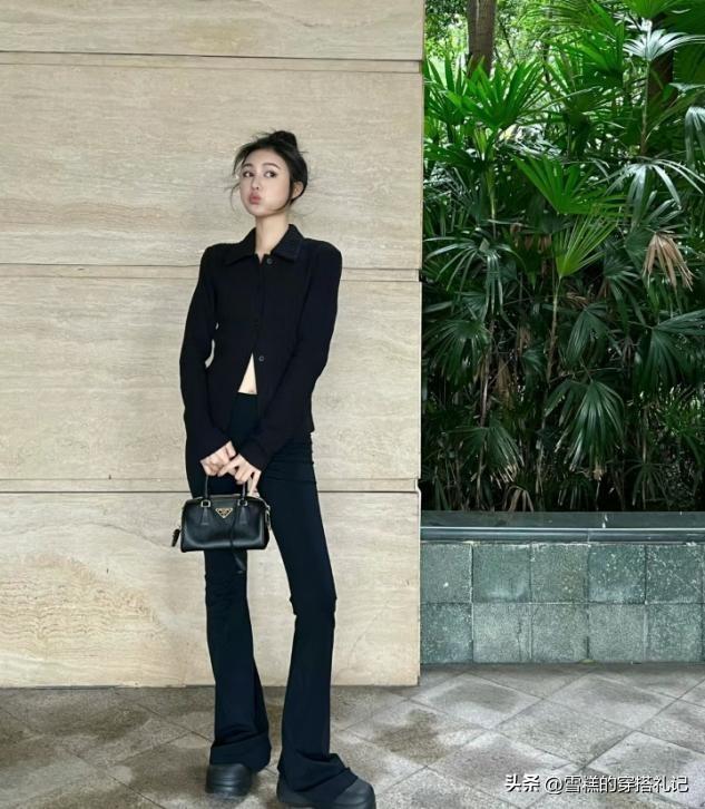 上衣疊加的穿法,肯定少不了包包這一類單品的襯托,優化視覺上的細節,穿法才能夠讓高級感如影隨形,馬蹄褲的精簡線條,爲你的穿搭提供了最高的便捷性。