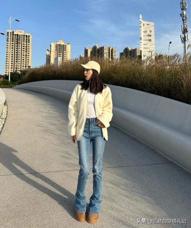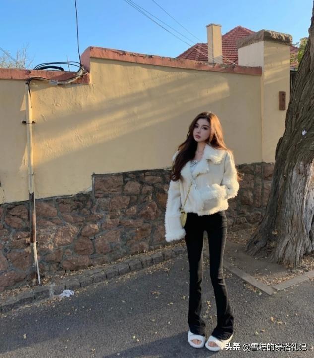 馬蹄褲造型還是需要一些經典的法則設計,作爲支撐的,上衣的長度不要太多,否則,很容易形成身材五五分的效果,稍微遮擋臀部的衣物長度,維護了腿長線條比例,同時,更好的展示出上短下長線條的劃分效果。