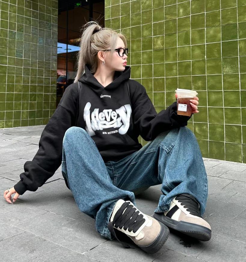 不同的衛衣版型,面料以及顏色,都會直接影響整體的風格走向,所以,想要把衛衣+渣女褲這對cp穿好,選款比搭配重要。