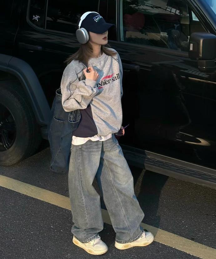 衛衣和渣女褲的穿搭,真的帥氣到飛起,經典的牛仔渣女褲,寬鬆的版型和垂墜感十足的長度,看似有些拖沓,卻讓你穿得非常有範。