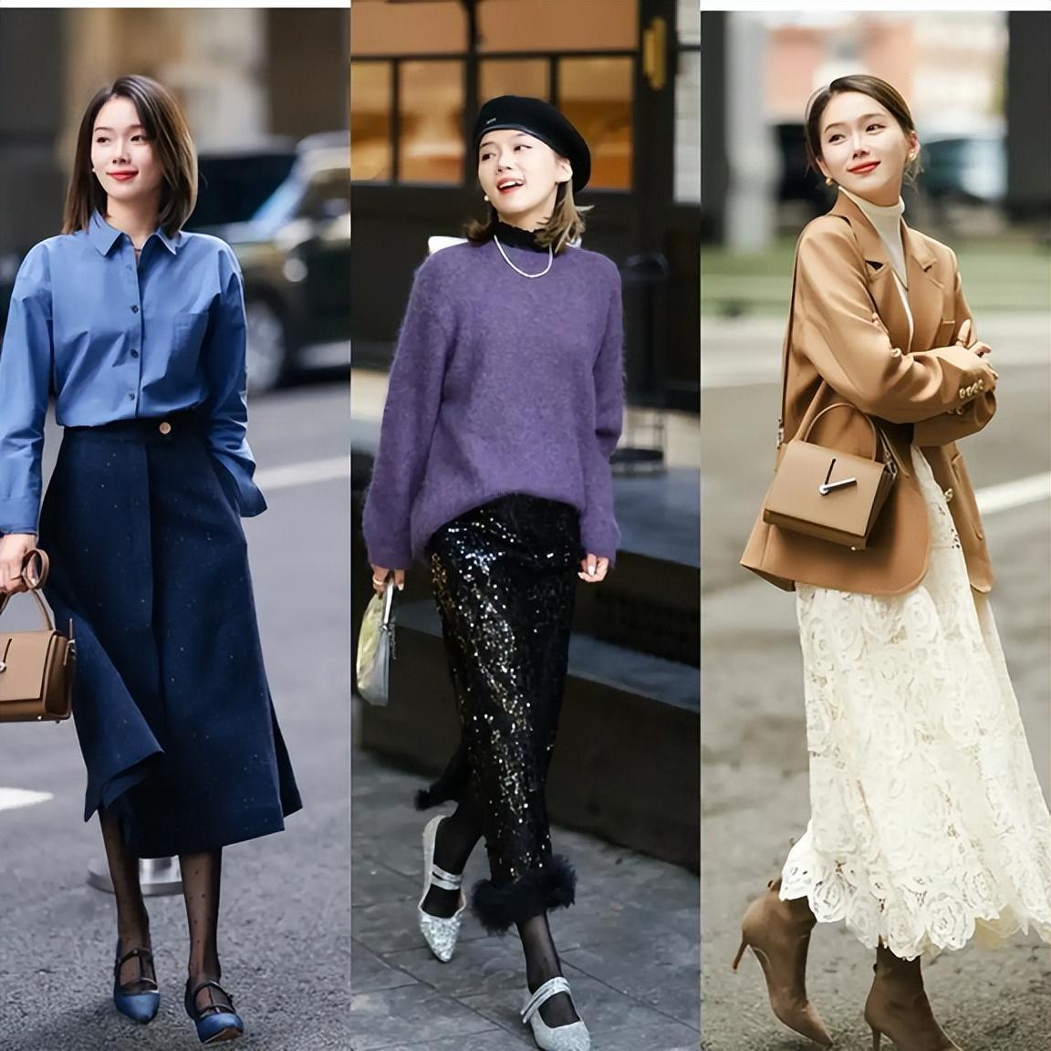 相對於比較挑剔身材氣質的連衣裙,我們可以搭配更加個性一點的裙裝。比如高腰的藏藍色半身裙、或者亮片半身裙、以及蕾絲半身裙,都是風格屬性明顯、個性又時尚的裙裝。