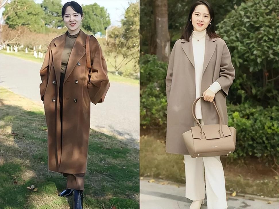 深駝色的大衣,有一種更穩重知性的美。40歲左右的女人,如果經常主持重要的會議,或者出入比較高級的場合,那麼深駝色大衣就足以提升氣質美。