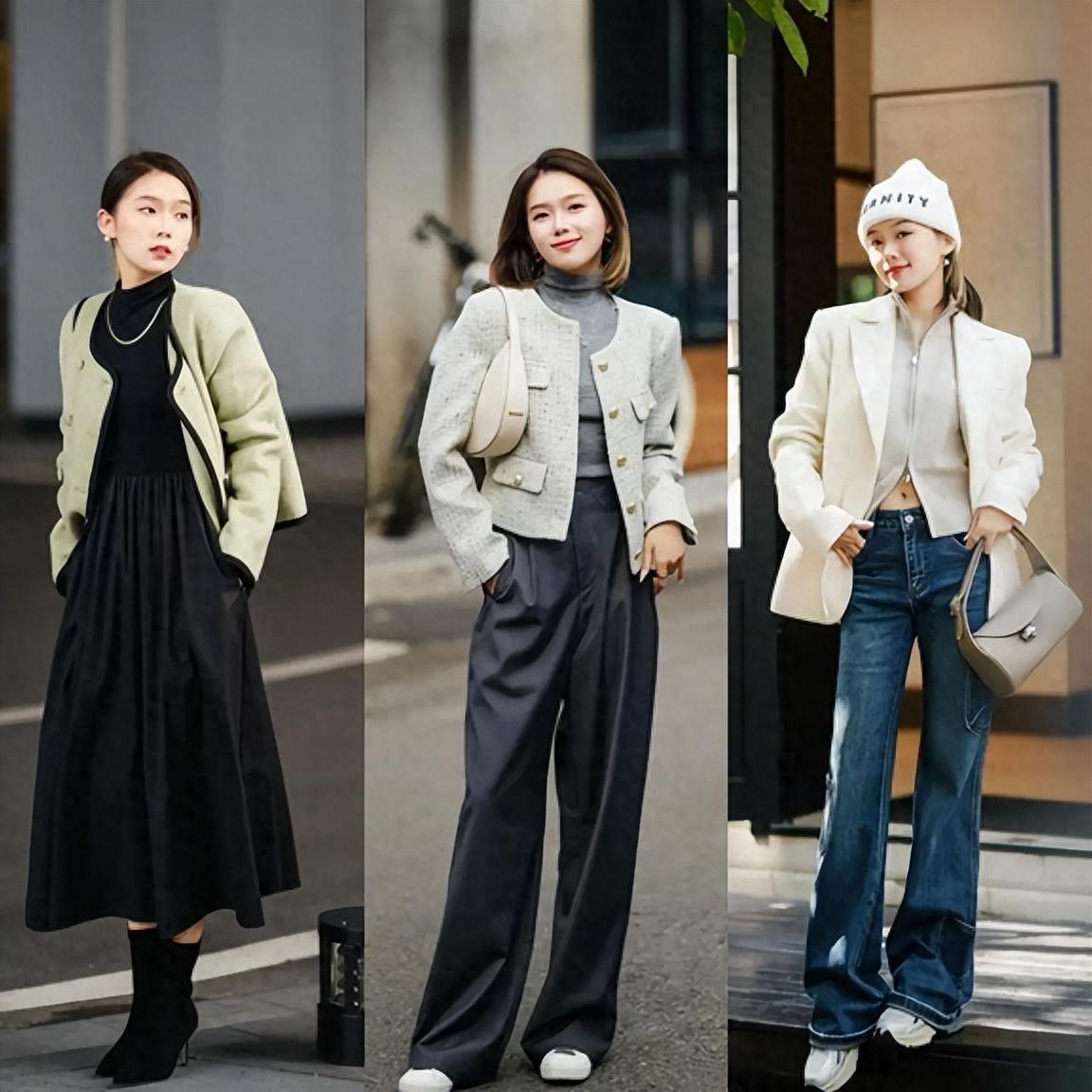 春天裏的小香風外套,不需要搭配夾棉、加絨、加厚的款式,可以搭配常規的毛呢、粗花呢面料,配經典的短款、圓領設計,就可以塑造出更高級高級體面的美。