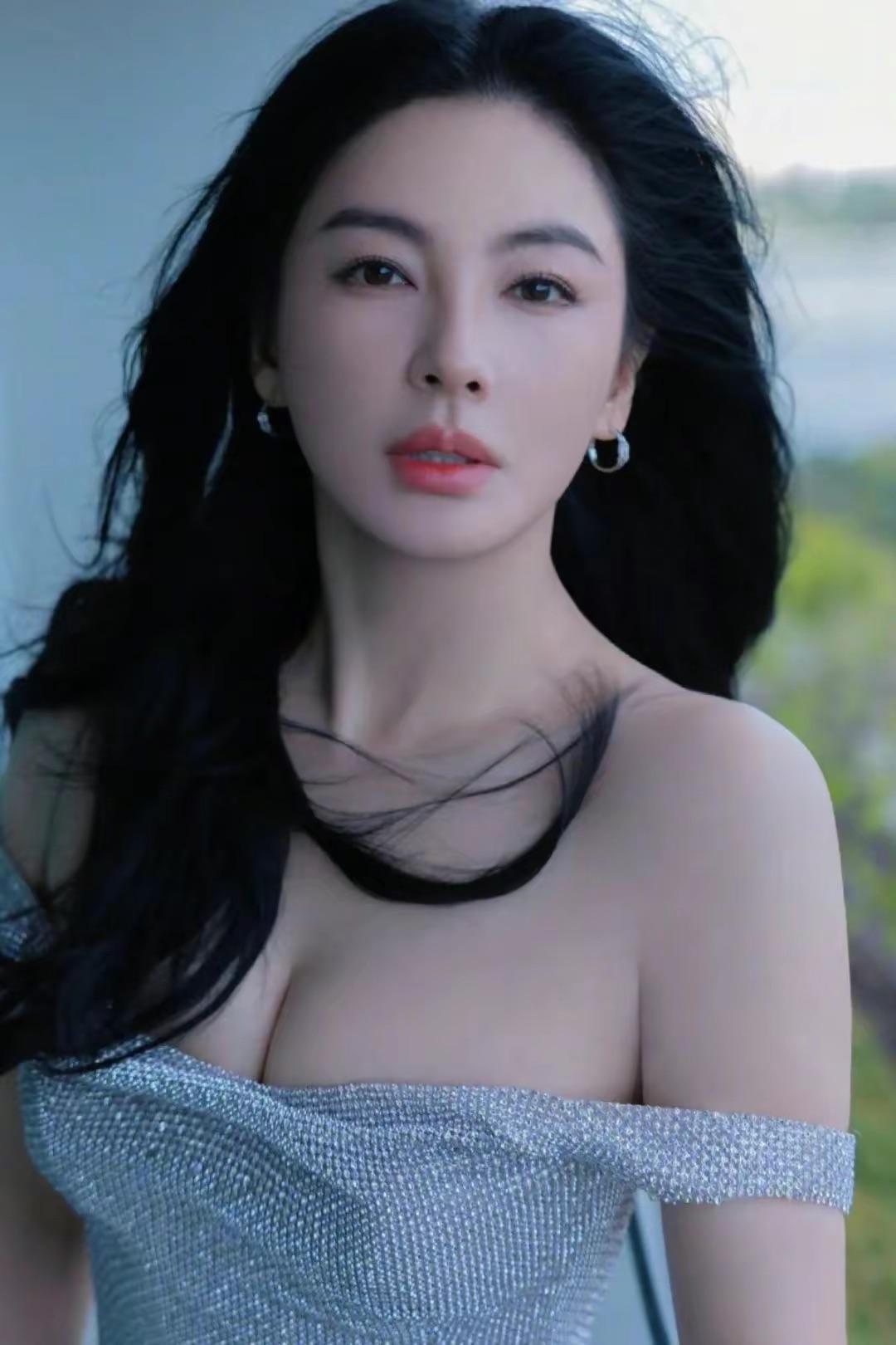 一頭蓬鬆的黑色長髮,擁有更加唯美朦朧的美。搭配了淺色系的紅脣,顯得她氣色更加明亮,有一種高級又冷豔的貴氣。