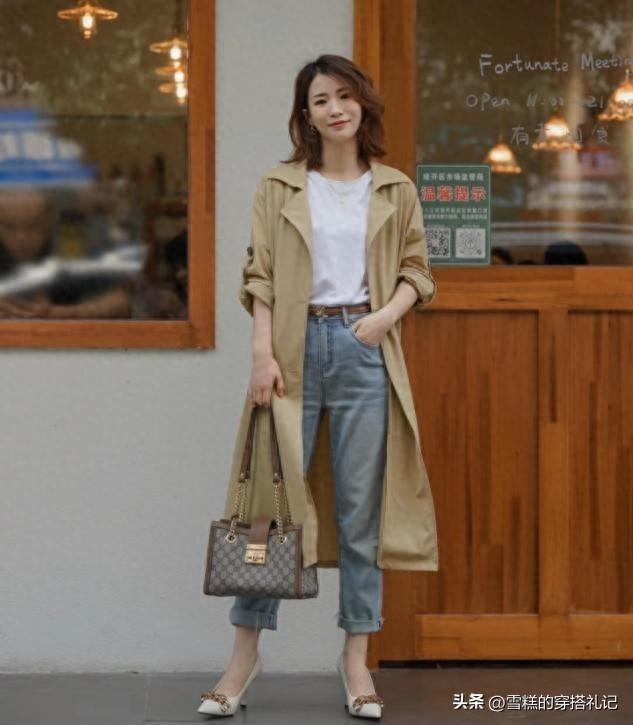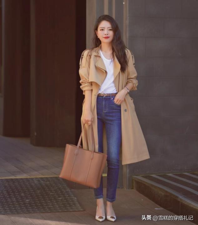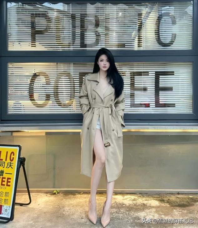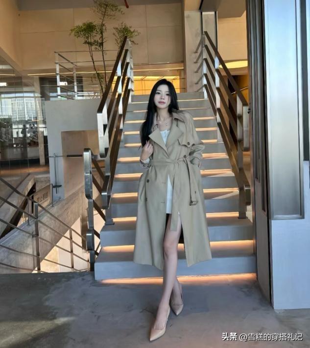 風衣外套和高跟鞋的銜接,可以讓你瞬間改變形象的氣質,稍微搭配微卷發或者長卷發,你就會發現外在形象的高級感提升特別明顯,這一套造型的優雅感和高貴感特別強,但是又擁有着獨一無二的親和性,相信你穿過一定會愛上!