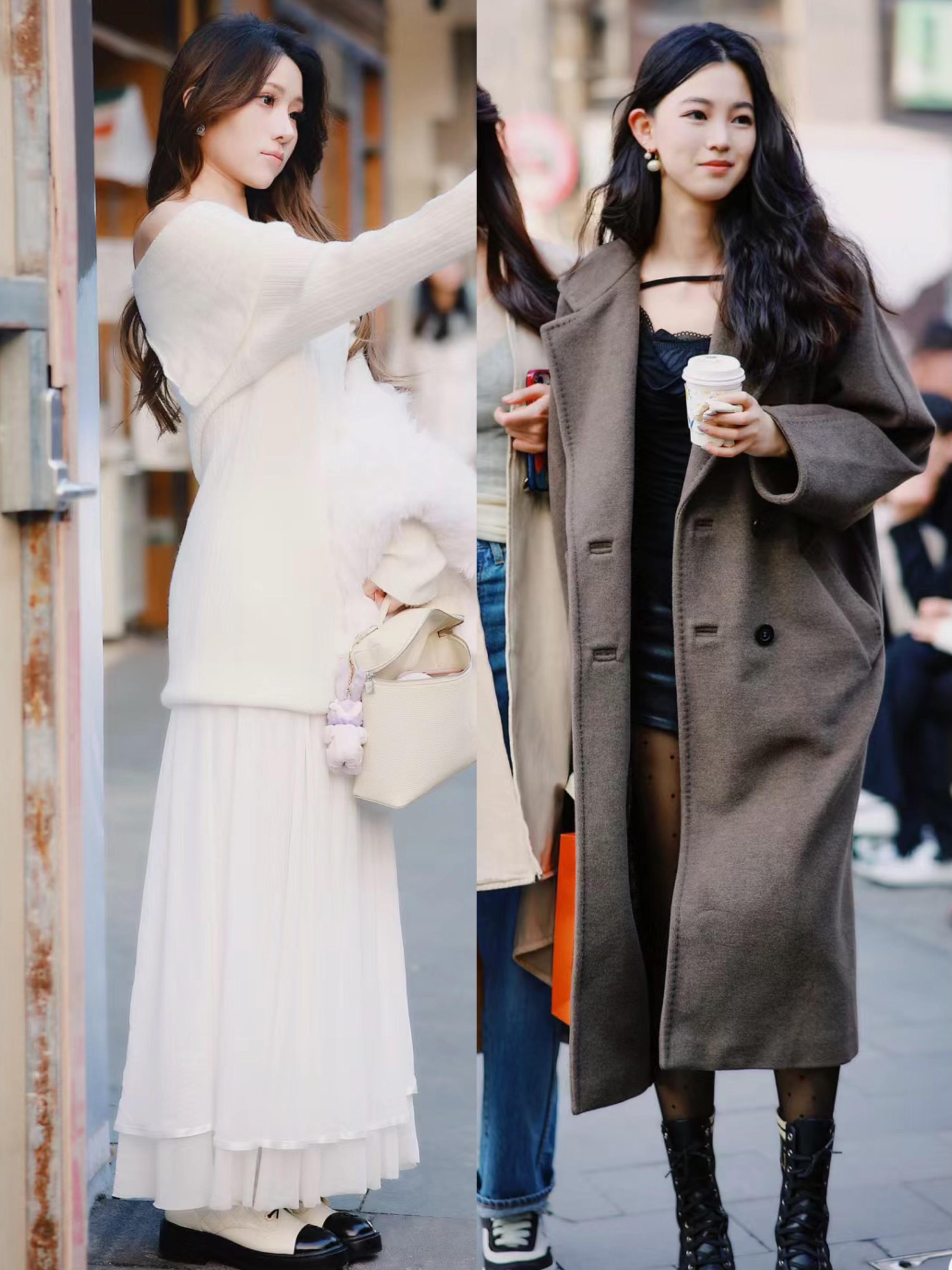 利用長大衣+修身連衣裙的組合,可以表現出女神的清冷與高級。長相高級、氣質清冷的女人,都可以選擇這種氛圍感拿捏的比較完美的穿搭。