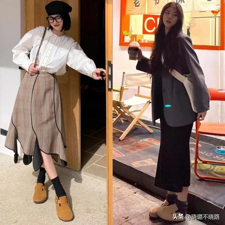 勃肯鞋看似有些木訥,卻能與裙子和諧搭配,勃肯鞋的自然無拘束、隨性休閒的風格與裙子的優雅或輕熟風格形成鮮明對比。勃肯鞋的休閒風格爲整體造型增添了一份隨性的魅力,而半身長裙的優雅則恰到好處地平衡了這種休閒感,使得整體造型既不失優雅又不失舒適。