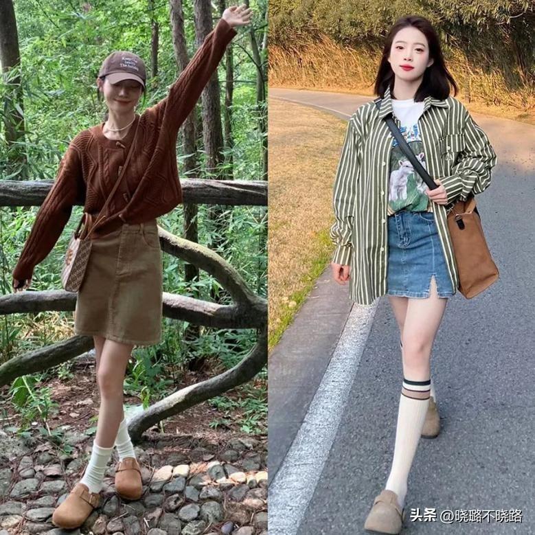 Look2:美拉德色系半身裙+勃肯鞋