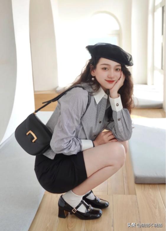 如果想要更加可愛俏皮的搭配,可以選擇偏圓頭的奶奶鞋,這款鞋子與一些同樣帶有可愛俏皮元素的泡泡袖針織衫搭配起來,顯得格外應景。