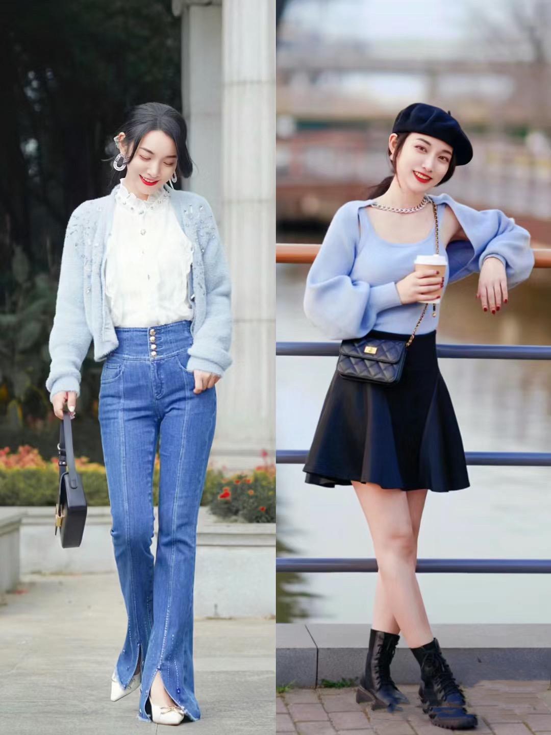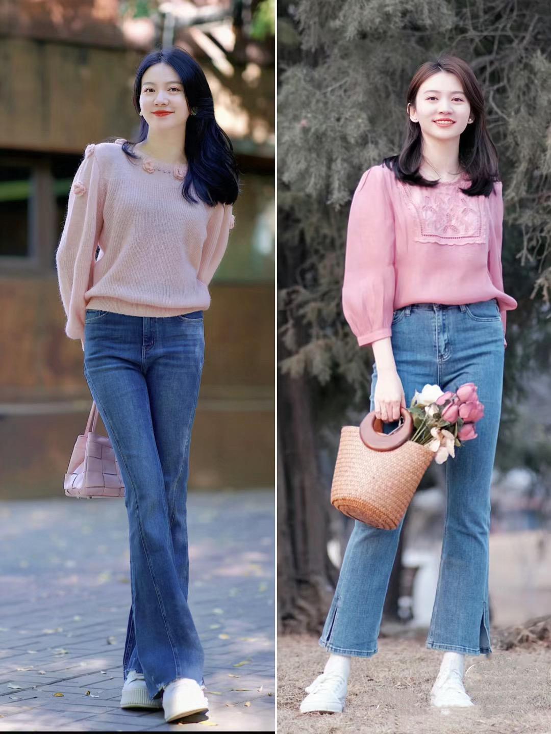 春天裏的淺藍色牛仔褲,可以搭配針織衫、襯衫、小外套等單品來穿着。色彩明亮的針織衫,配上淺藍色的牛仔褲,更多了幾分俏皮活潑的美,可以在一定程度上弱化年齡感。