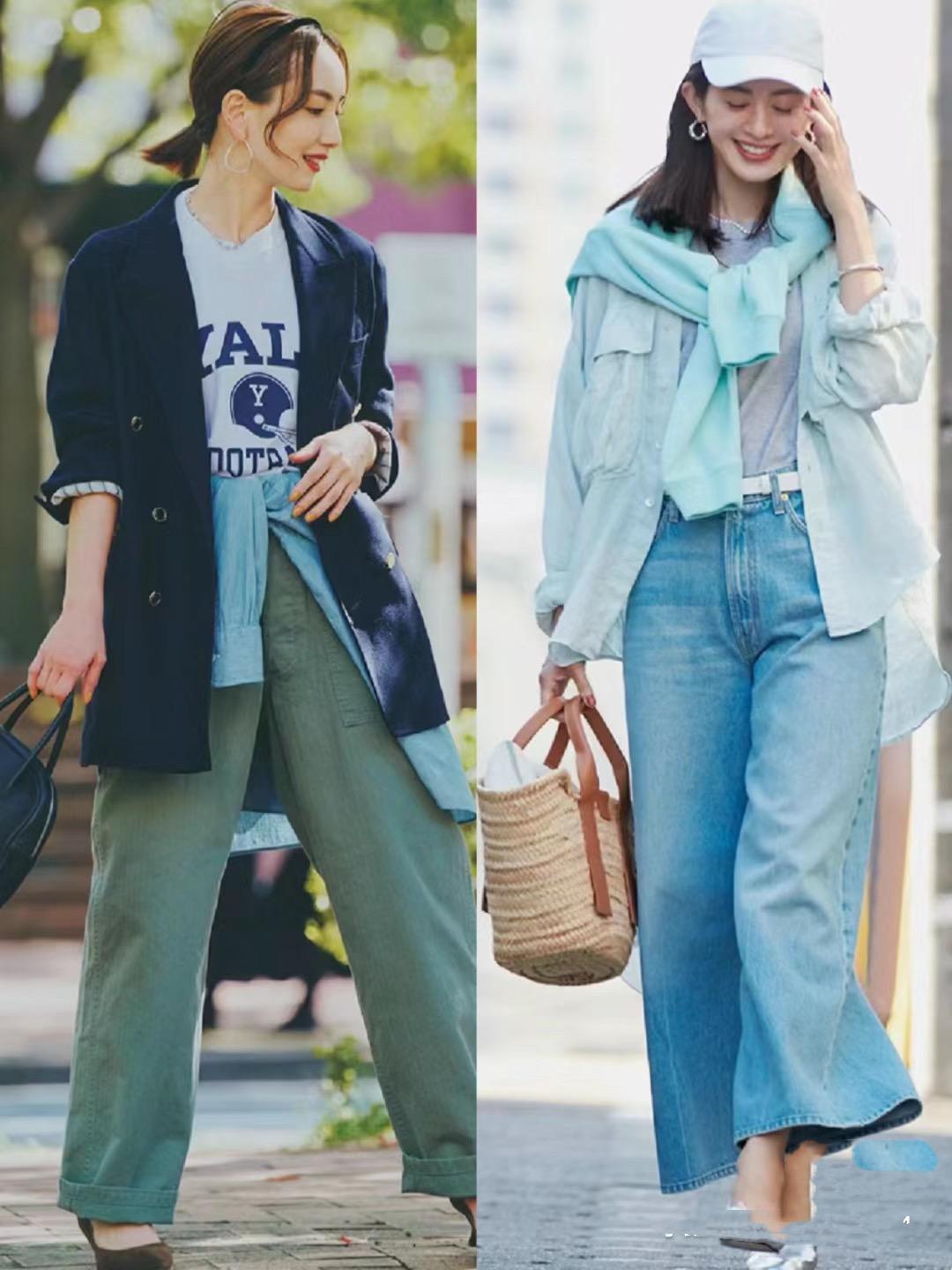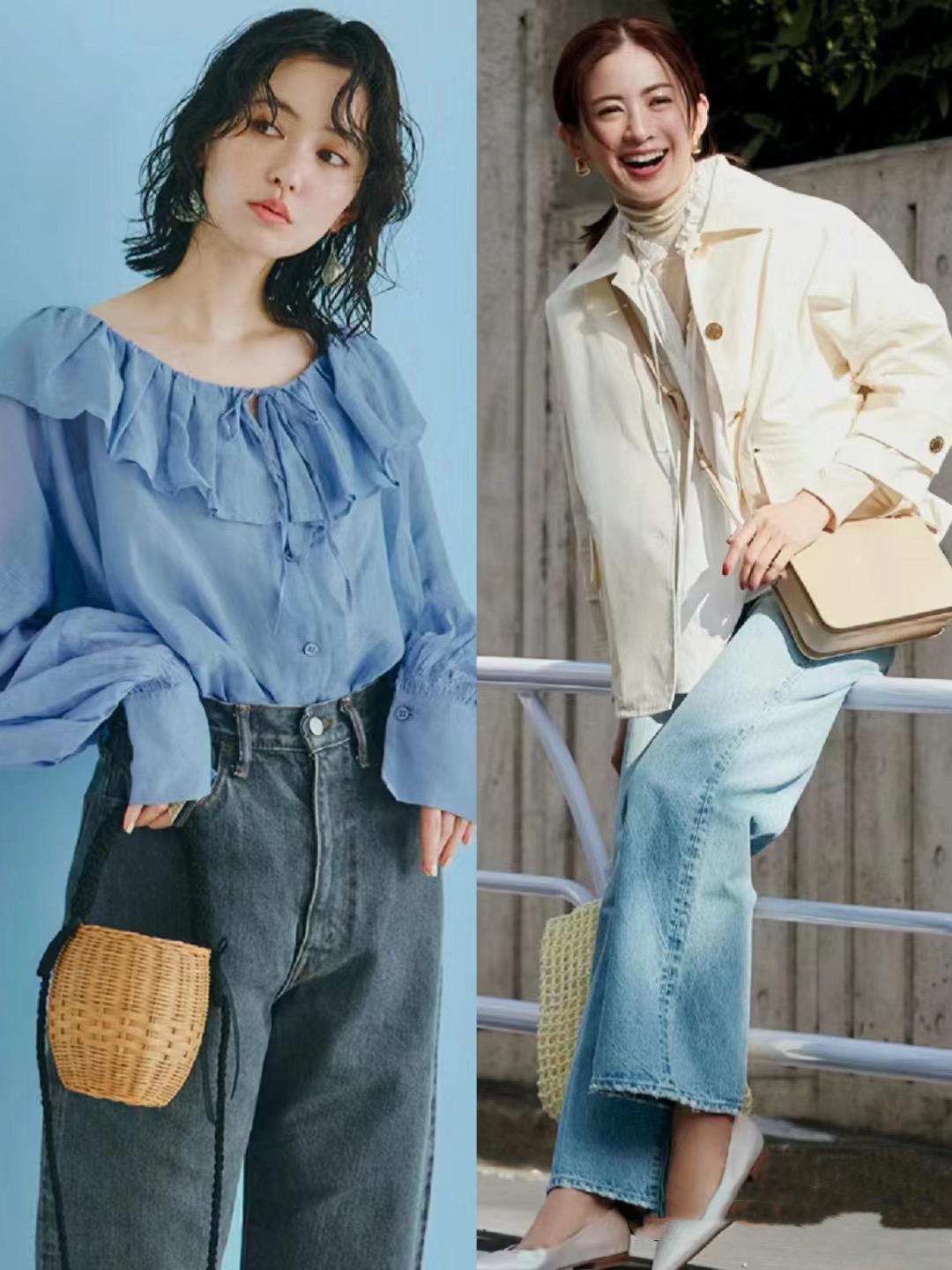淺藍色的直筒牛仔褲,會更加時尚減齡一些。深藍色牛仔褲,更加內斂大氣。不管是哪一種色彩的牛仔褲,我們都可以搭配相對柔軟輕薄的面料,才更加符合春季氛圍。