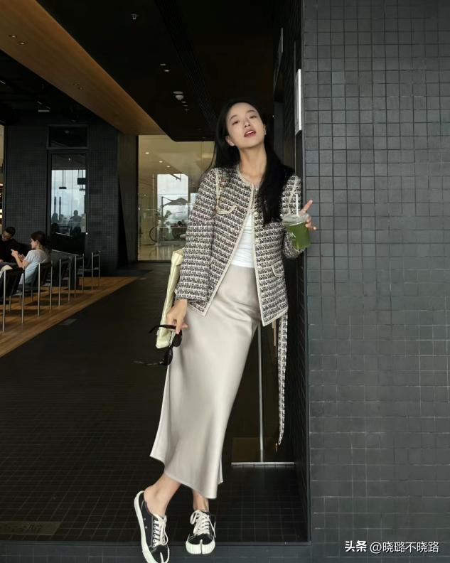 短款裙子更加活潑減齡一些,而過膝的長裙會更加優雅洋氣一些,各有各的美,但是儘量避開完全遮擋住腳腕的長裙,一是顯得沉悶厚重,二是模糊比例層次。微微的露出腳腕,可以藉助腳腕與裙襬的寬窄對比,給人腿部格外纖細的錯覺。