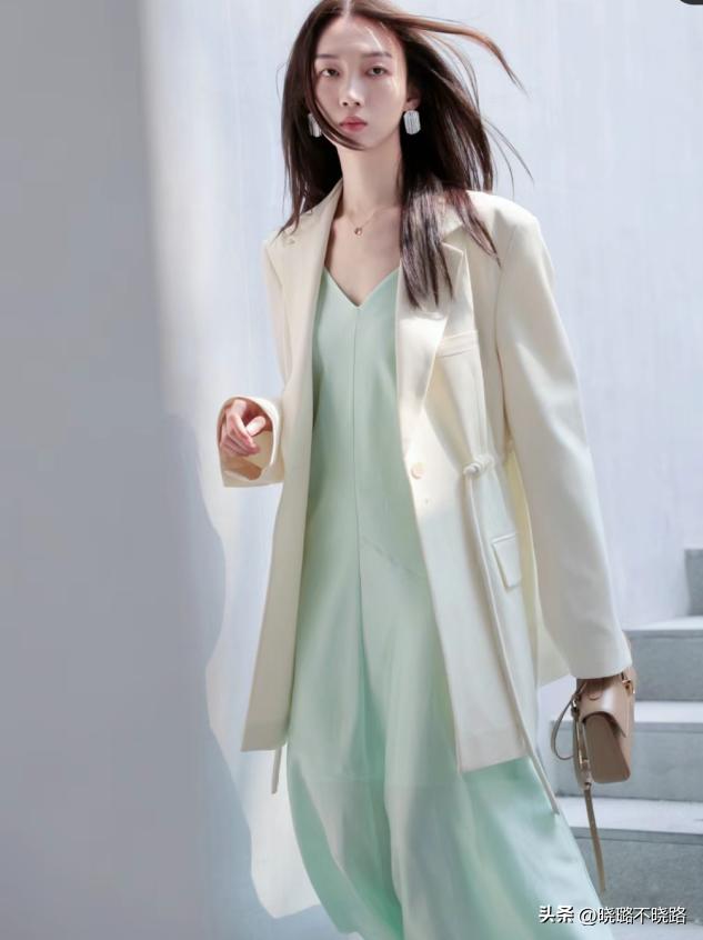 綠色裙裝與白色、黑色單品的結合,恰到好處的滿足了彩色與基礎色的組合,可以大幅度的提升整體的氣質,尤其這種白色西裝配薄荷綠裙子,整體都非常的淡雅別緻,顯得人乾淨又利落。但是膚色偏黃的女人更建議穿奶白色的西裝,效果會更加出衆一些。