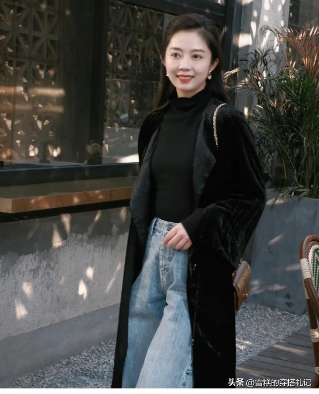 如果是兩件都比較長的單品進行疊加,那麼更需要多關注下整體的長短配合,比如這種過膝的開衫配拖地長褲,開衫的長度要比長褲短一些,避免齊平狀態,這樣才能夠更加的顯高挑一些。
