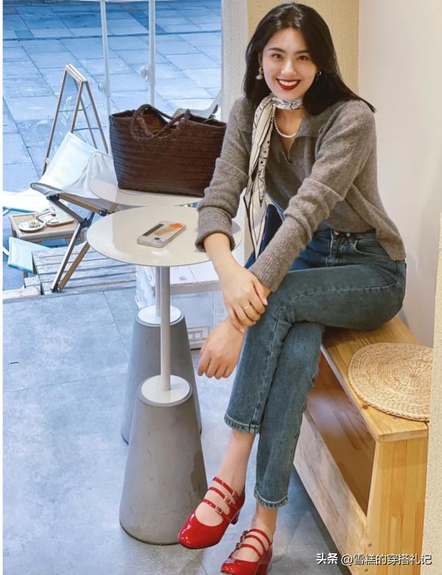 流行色放在鞋子、帽子上:中年女性也可以大膽的嘗試下流行色,只不過需要注意單品的選擇,儘量滿足量感小+位置低這兩個條件,搭配更加得心應手,不容易出錯。比如這種酒紅色的瑪麗珍鞋,瞬間提亮了整體,顯得穿搭更具有法式的浪漫。