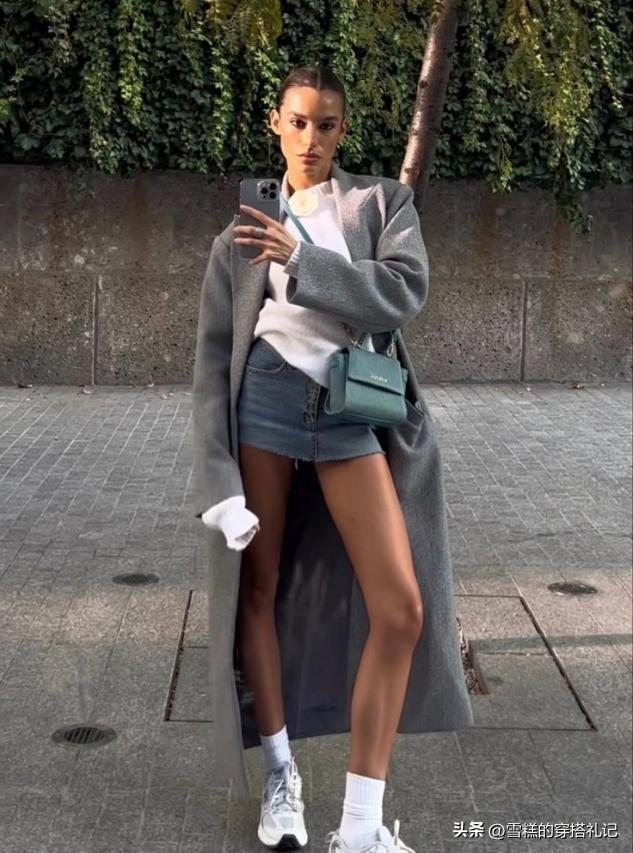 學會用短襪單品來剪接灰色系的外套,我們就可以靈活的去選用下衣失蹤的穿法,超短裙和超短褲都可以用上,開春顯然就是穿絲襪單品的最好時節,在視覺上露腿,同時又用灰色作爲主色調,個性的特點,瞬間讓你非常出衆。