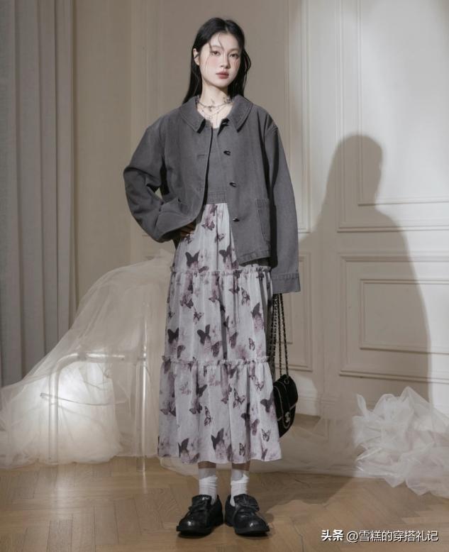 半裙單品就選擇剛好遮過膝蓋的長度,稍微點綴一些碎花,用灰色作爲基礎色調不容易顯胖,體型偏胖的女生可以大膽穿這一類單品。