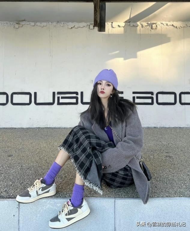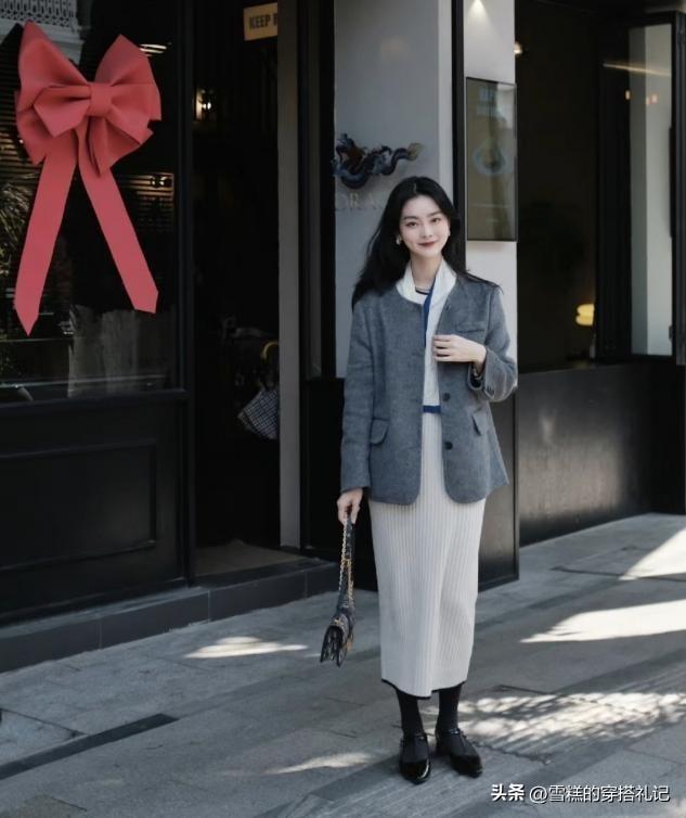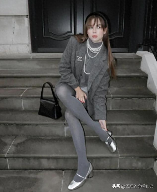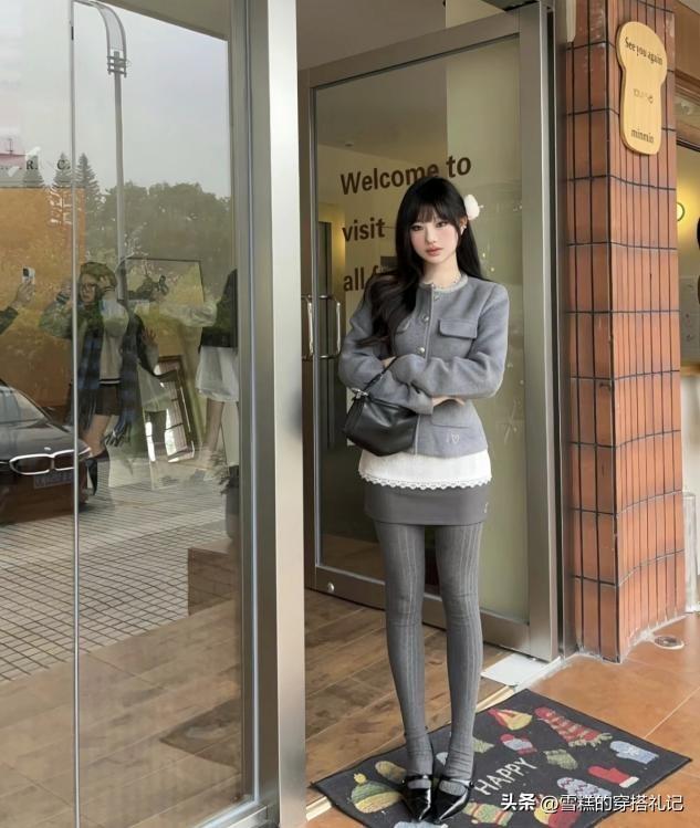 ✔打底褲選灰色,延長腿型不顯胖