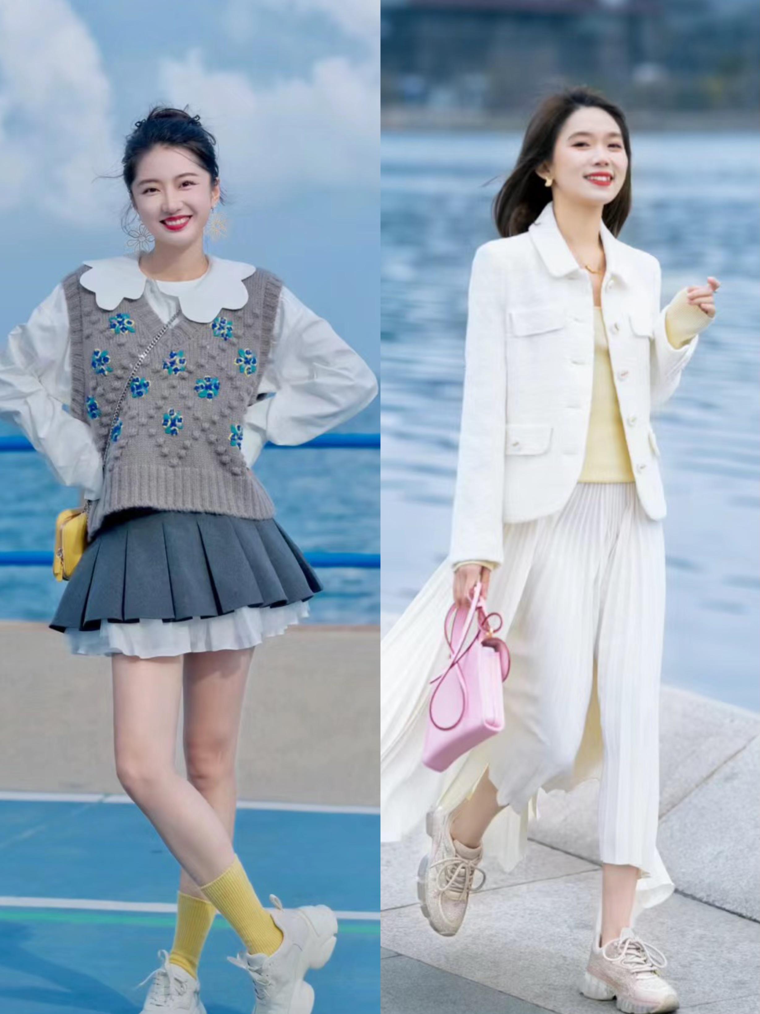 隨着天氣的轉暖,老爹鞋還可以解鎖更多時髦的穿着方式。老爹鞋搭配飄逸的半身裙、或者甜美的百褶裙,都具備了十足的魅力。