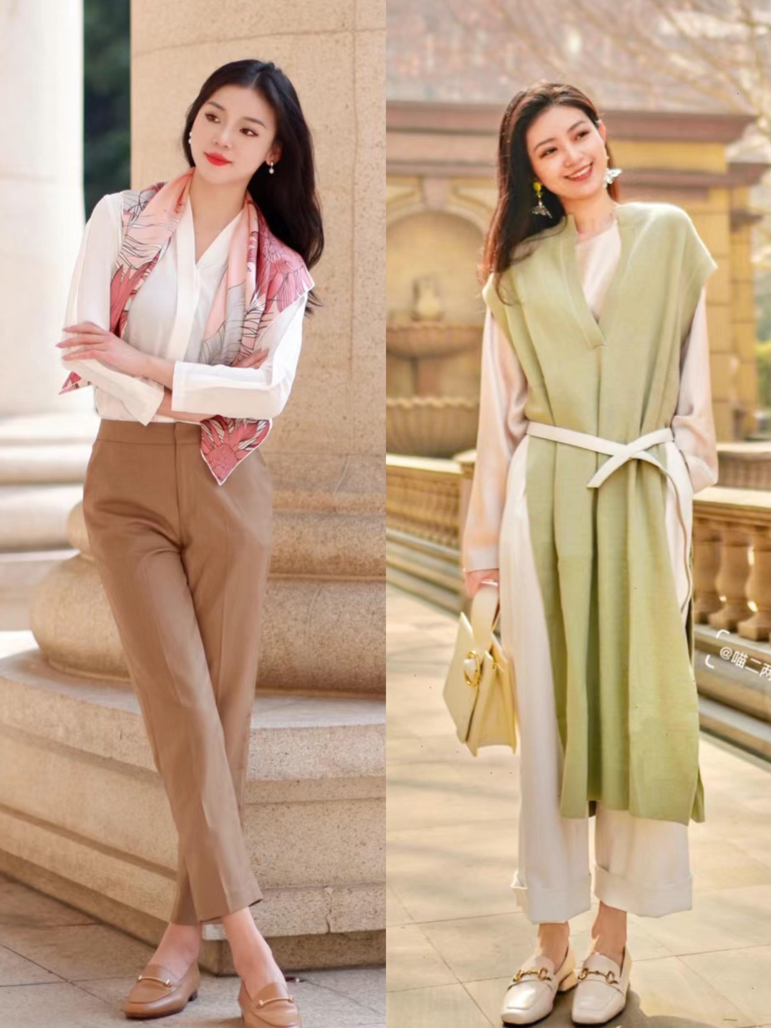 如果擔心小白鞋和老爹鞋太過休閒,整體風格不夠利落幹練。那麼通勤上班、或者出入一些正式的場合,更建議大家選擇樂福鞋。