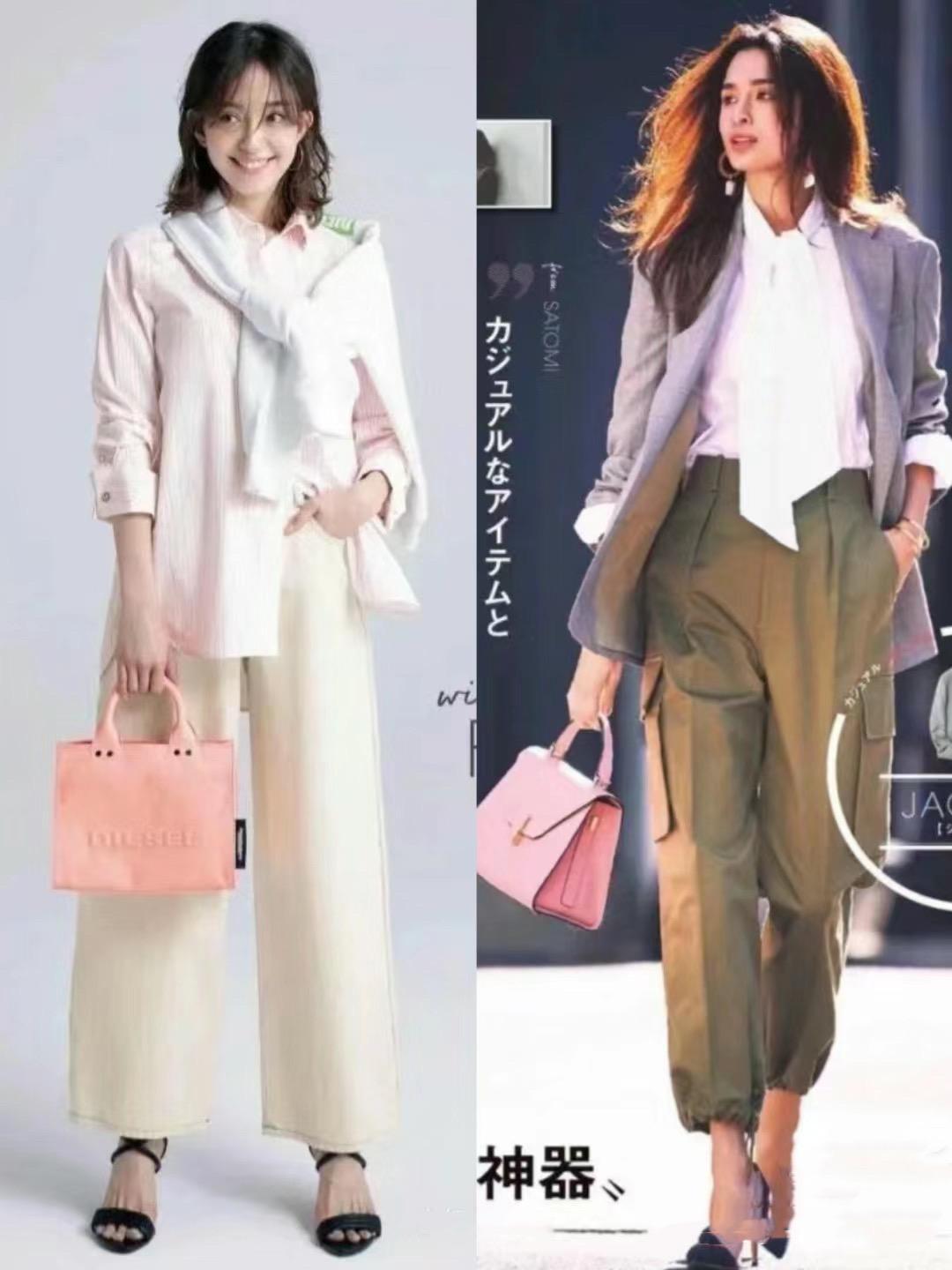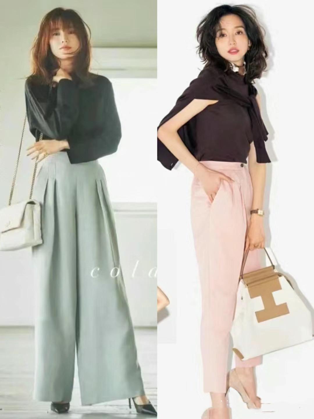 比如經典的純色T恤、或者基礎款襯衫,都可以搭配高腰的闊腿褲、或者錐形褲來穿着。闊腿褲/錐形褲,利用了腰胯部打褶的設計,更加具備了包容性,更耐看也更顯瘦。