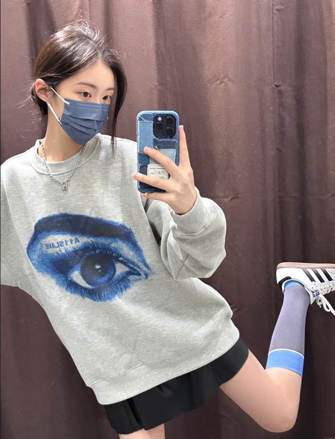 今年時尚圈裏的衛衣是開掛了吧?真的挑得我有些眼花繚亂,這件灰色圓領衛衣,穿脫都很方便,胸前眼睛印花圖案個性十足。