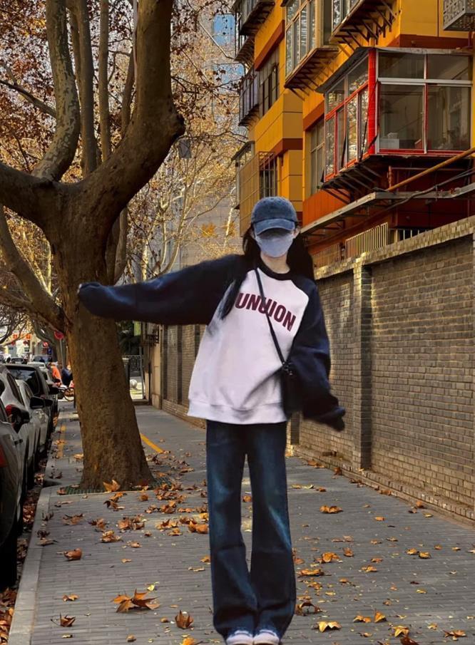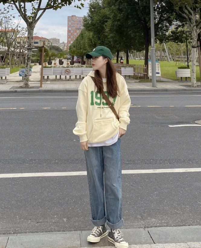 這一套實在是太愛了,早春美式復古風穿搭,插肩圓領的衛衣,穿起來也太個性時髦了。寬鬆的版型,給予你身材無限的可能,藏肉更顯瘦。
