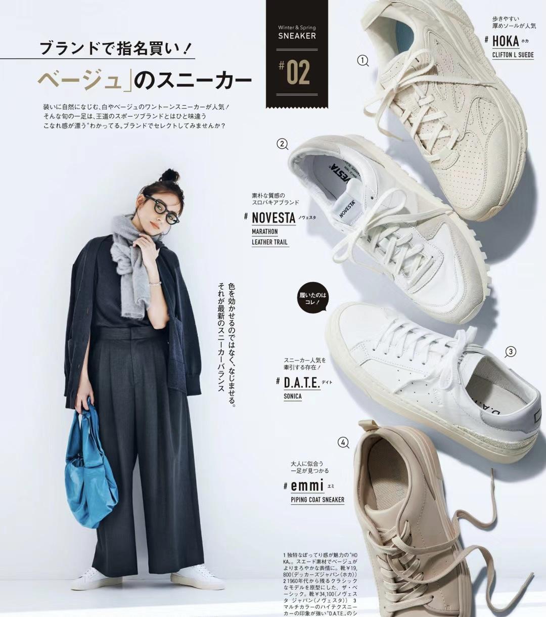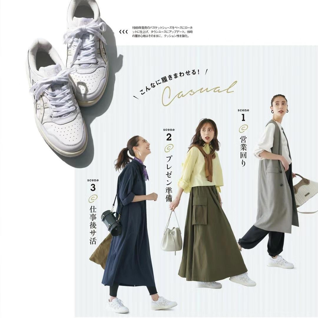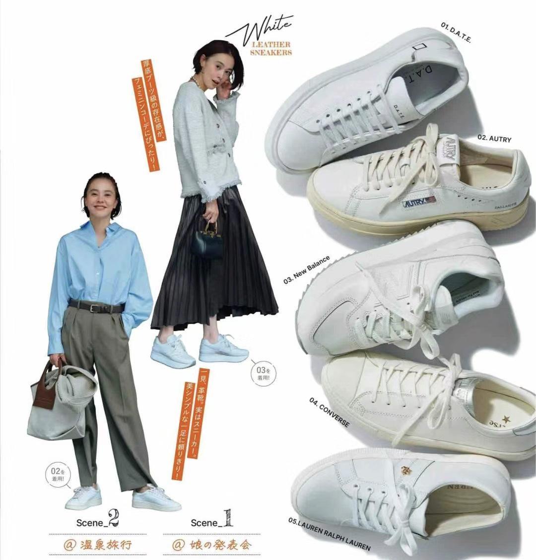 低幫的小白鞋,是一種更加百搭、耐穿、且具備了春日氛圍的鞋子。我們可以選擇運動風的低幫小白鞋,露出腳踝線條、表現出更顯高的效果。