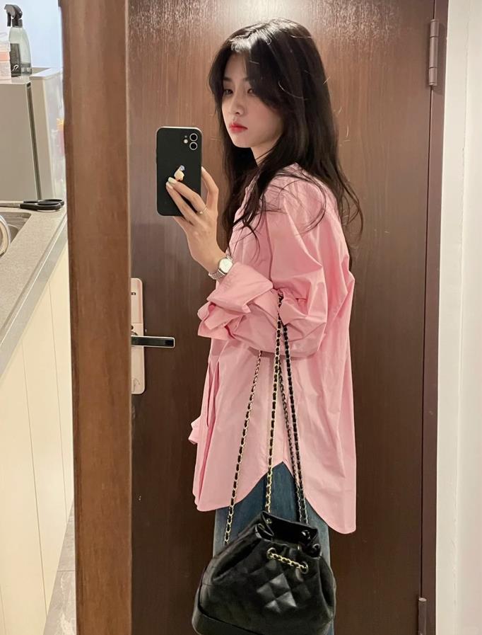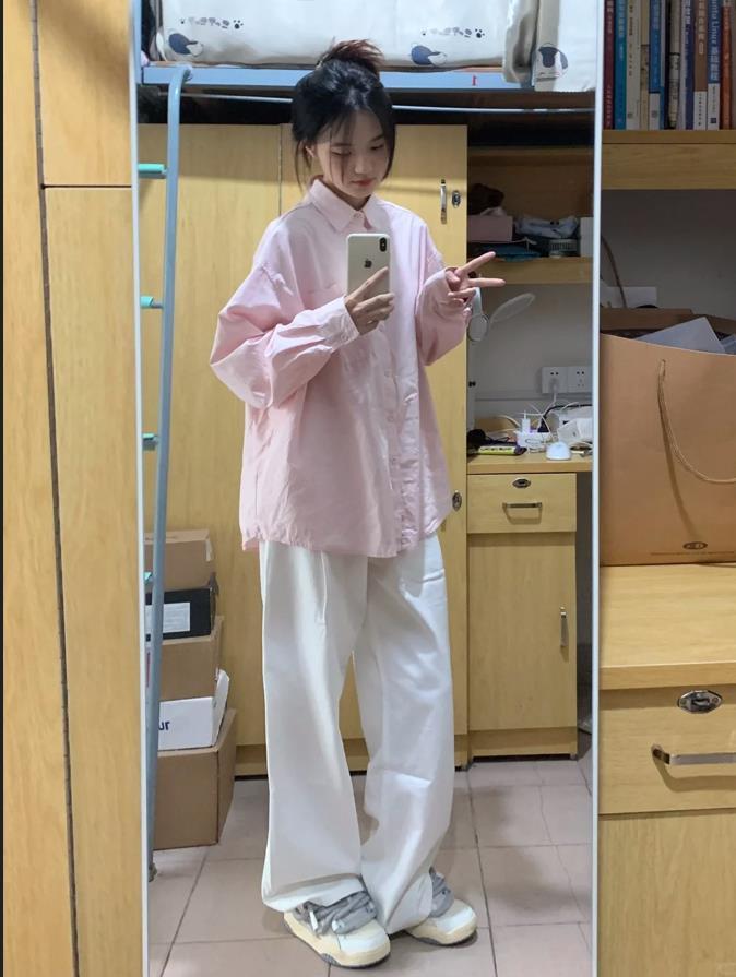 穿膩了白襯衫的姐妹,一定要試試這個粉襯衫,少女感直接拉滿了,粉和白的配色,把整個人都襯托得很嫩。