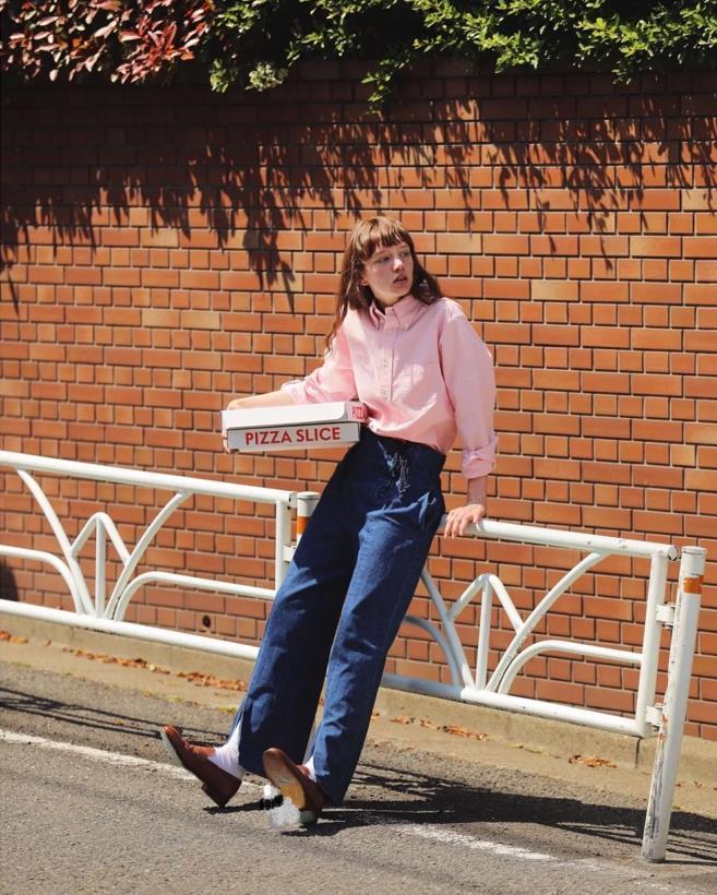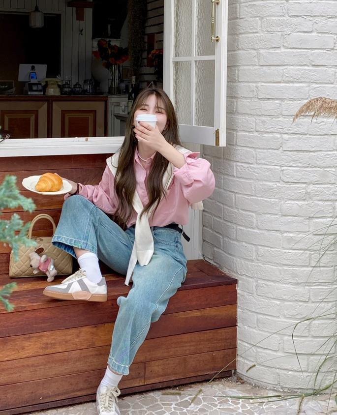 喜歡韓女的穿搭,就好比這一套,淺淺淡淡的粉色襯衫,穿起來後把整個人都襯托得很嫩。搭個小披肩什麼的,就很顯層次了。