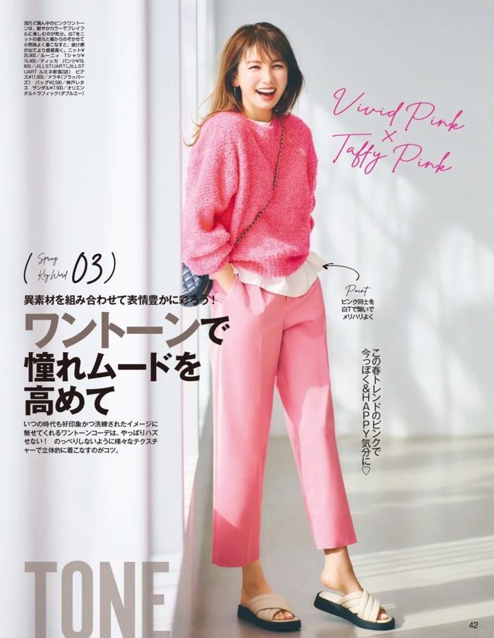 粉色之所以容易穿出俗氣和土氣感,不懂配色也是一個問題,選擇與粉色相配合適的顏色組合,會將粉色的優勢呈現出來。