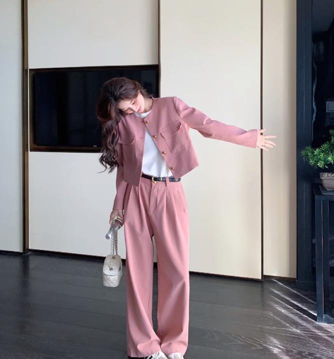 誰懂啊,西裝配粉裙子也太韓了,穿上粉色整個人的心情都變得很好,甜甜乖乖的一套,也太好看了。