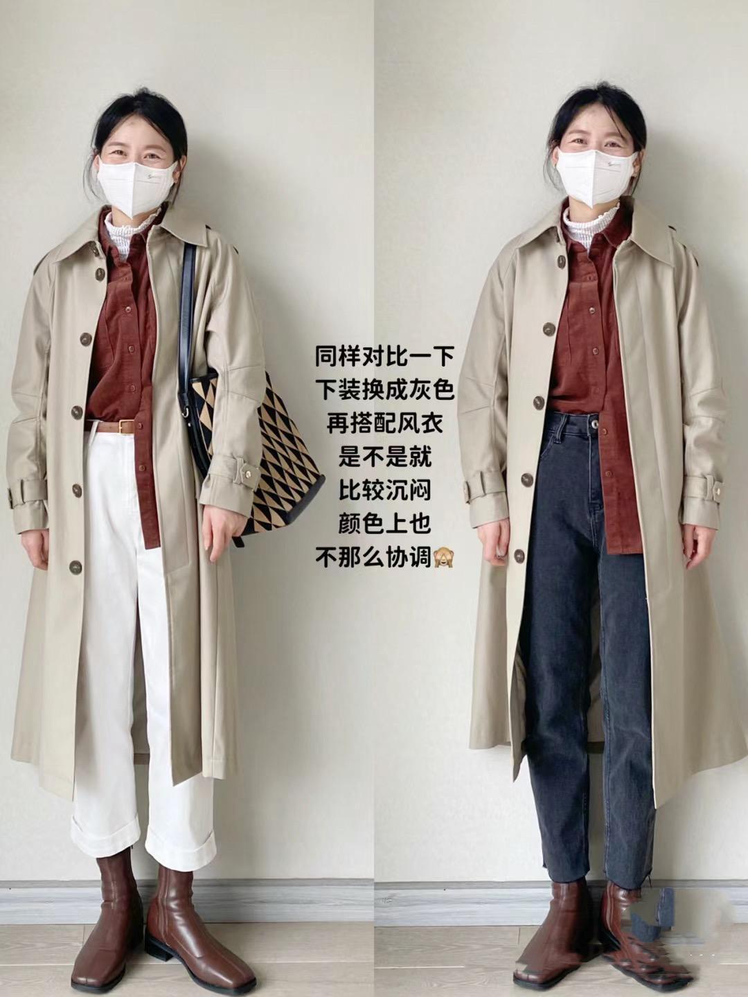 雖然同樣都是襯衫+牛仔褲作爲風衣裏面的內搭,但如果不注意風格感的呈現,還是很容易顯土氣的。不對比不知道,一對比嚇一跳,果然是沒有錯。