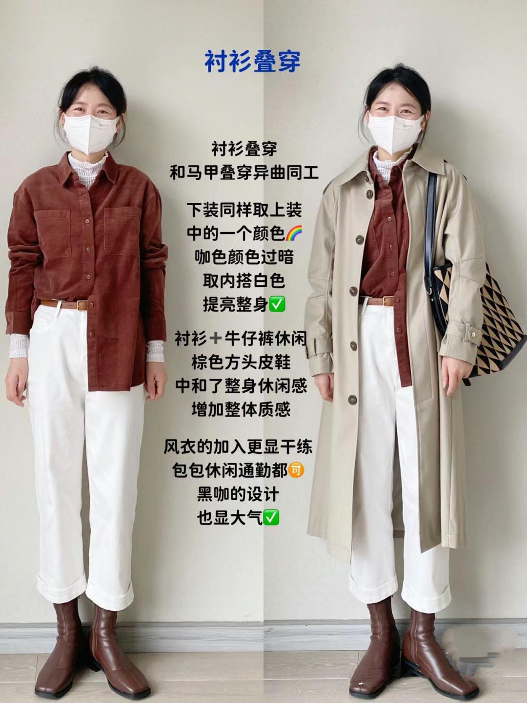 如果是還有一點清冷的北方,三月份的天氣不宜穿得太過輕薄。一件帥氣的風衣,可以疊搭燈芯絨襯衫+半高領打底衫,有一種利落又保暖的效果。
