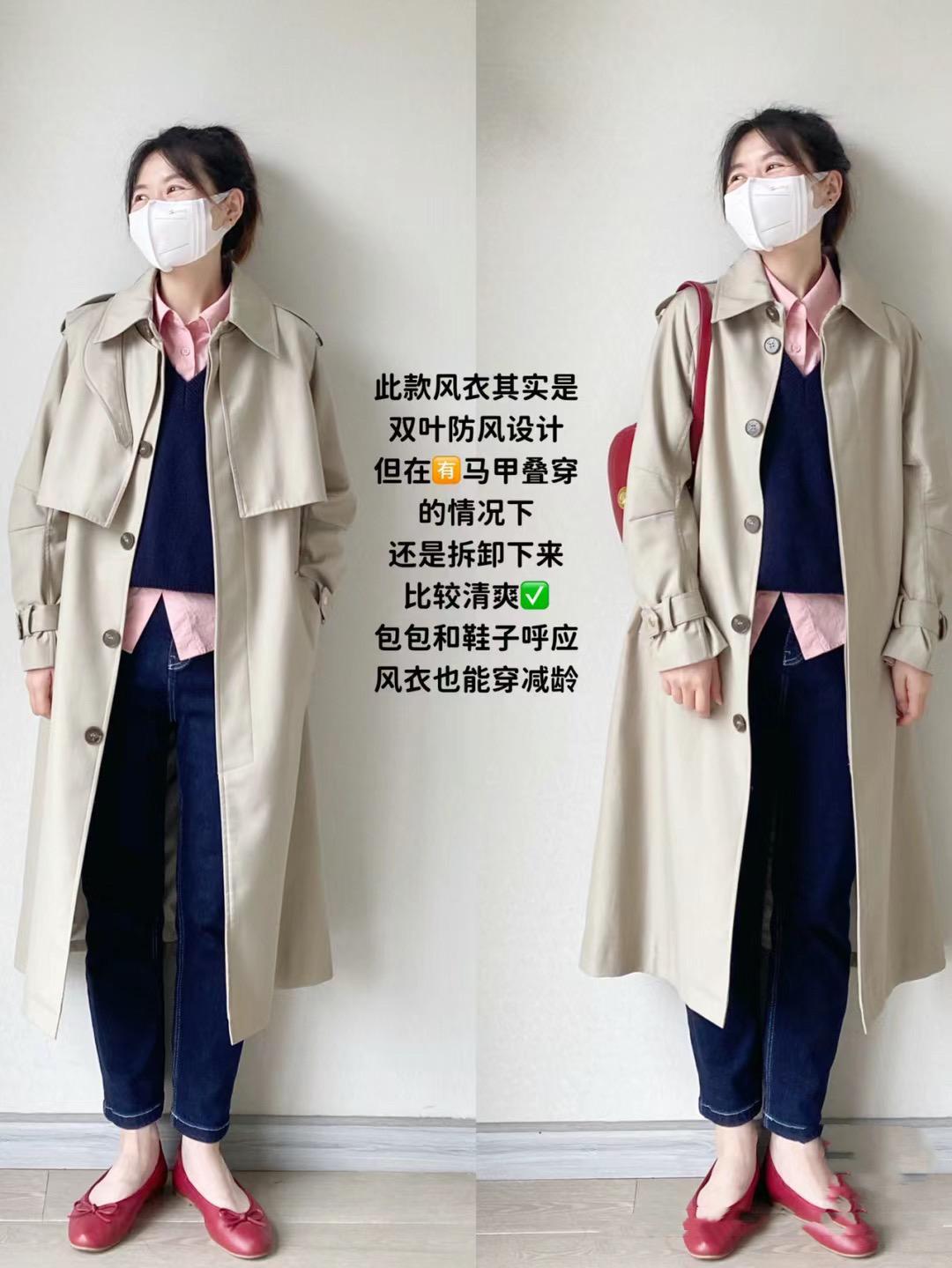 當我們選擇襯衫+馬甲作爲內搭進行疊穿的時候,風衣儘量選擇比較簡潔的款式。如果風衣設計感太強,就容易顯得厚重、繁瑣。