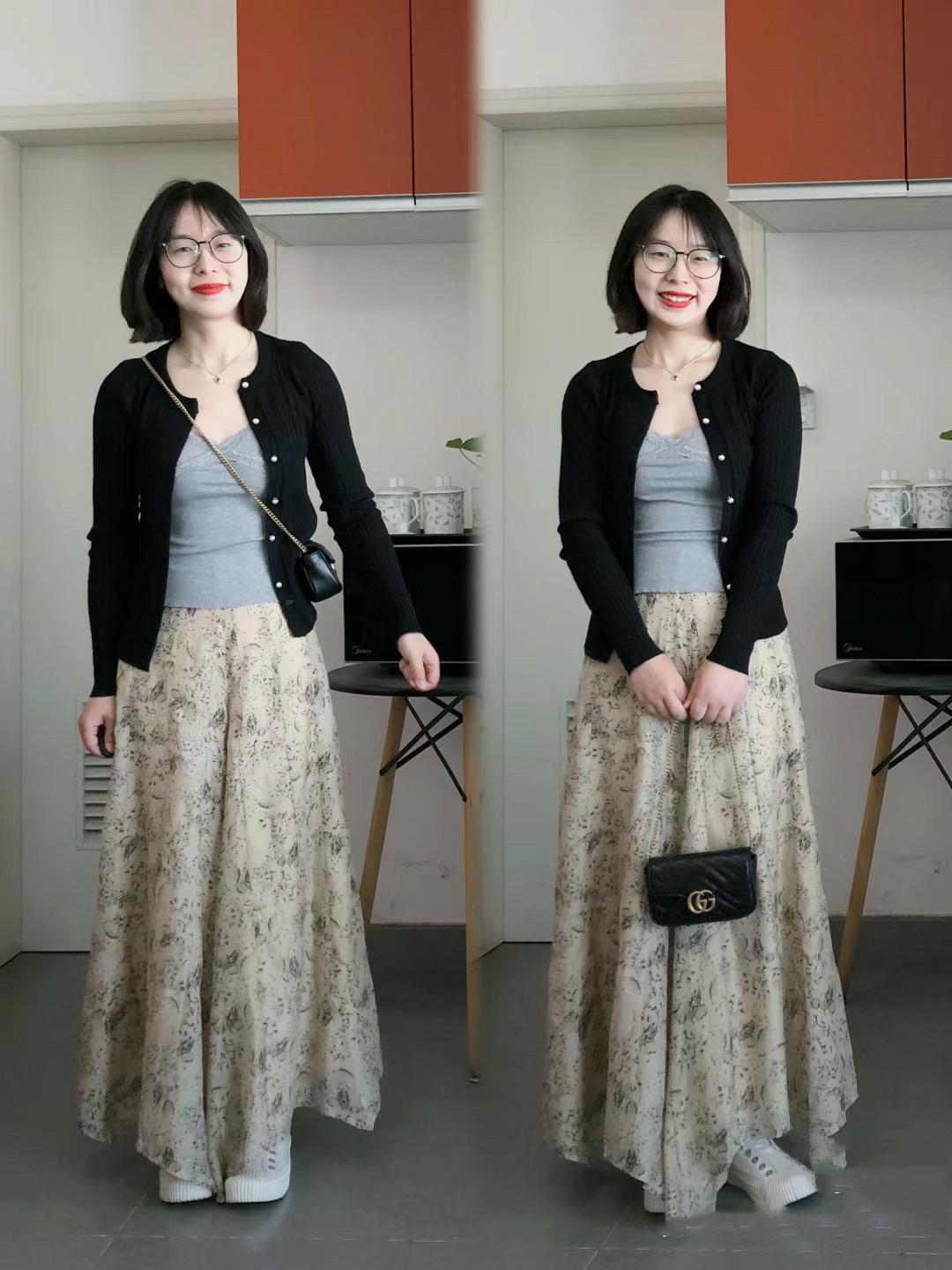 經典的黑白配,可以穿得輕柔大方、也可以穿得知性高級。短款的黑色針織衫,疊搭修身的打底衫,是一種利落又顯瘦的穿着方式。