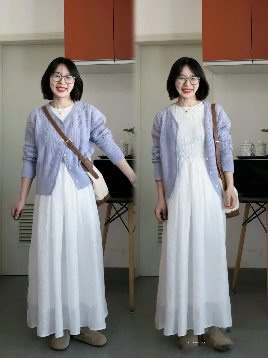 像這種淺紫色的針織開衫,我們可以配挺闊的白色刺繡連衣裙來穿着。經典的白色連衣裙作爲內搭,有一種雅緻大氣的美,配舒適的勃肯鞋、也更自在。